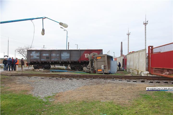 В оккупированной Керчи грузовик, который возил материалы для незаконной постройки моста через пролив, попал под поезд.