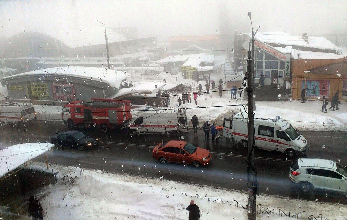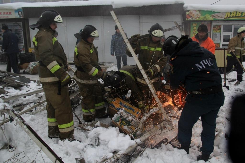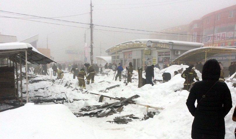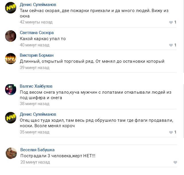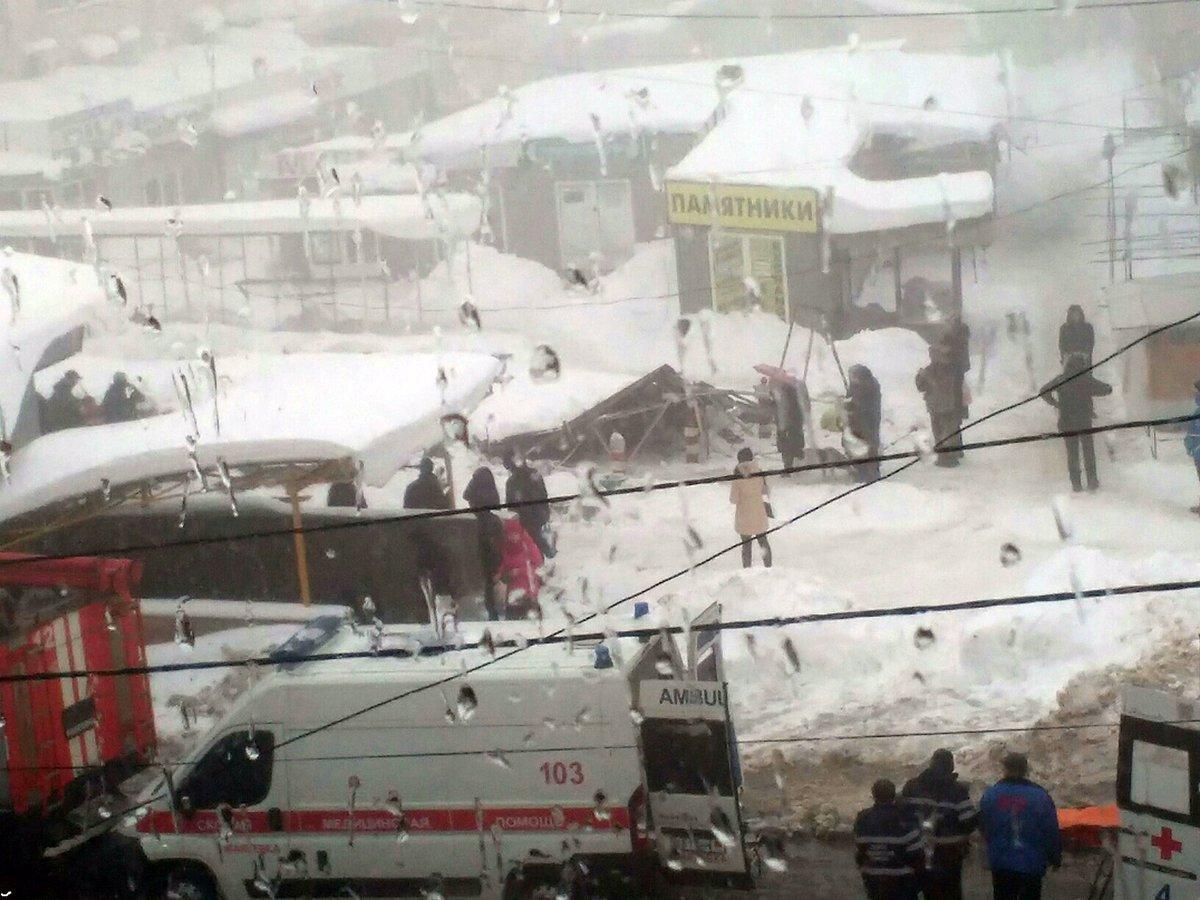 Как пишут в сети очевидцы, крыша рухнула под тяжестью снега. Из-под завалов из снега и шифера мужчины откапывали людей лопатами.
