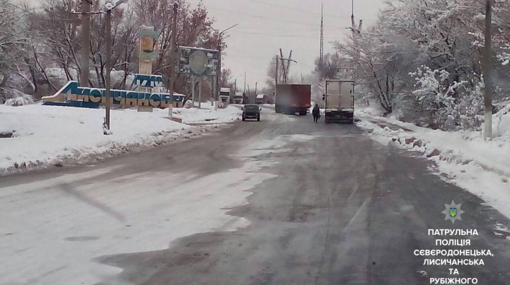 Из-за непогоды дороги в Лисичанске то заносит снегом, то покрывает льдом.