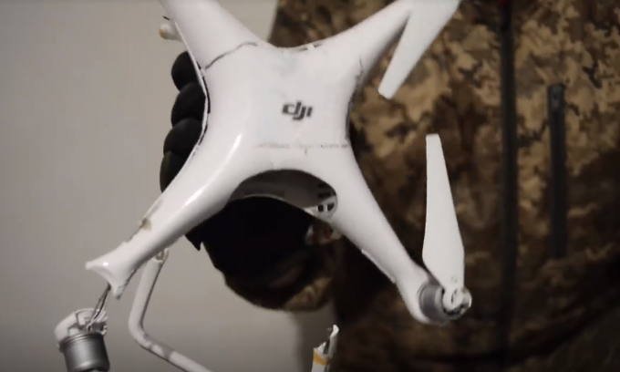"Российские наемники оснастили обычный китайский дрон фирмы DJI модели «Фантом-4» осколочной взрывчаткой. Кустарным способом они оснастили дрон переработанным осколочным выстрелом ВОГ-17 с хвостовиком, напечатанным на дешевом 3D-принтере.