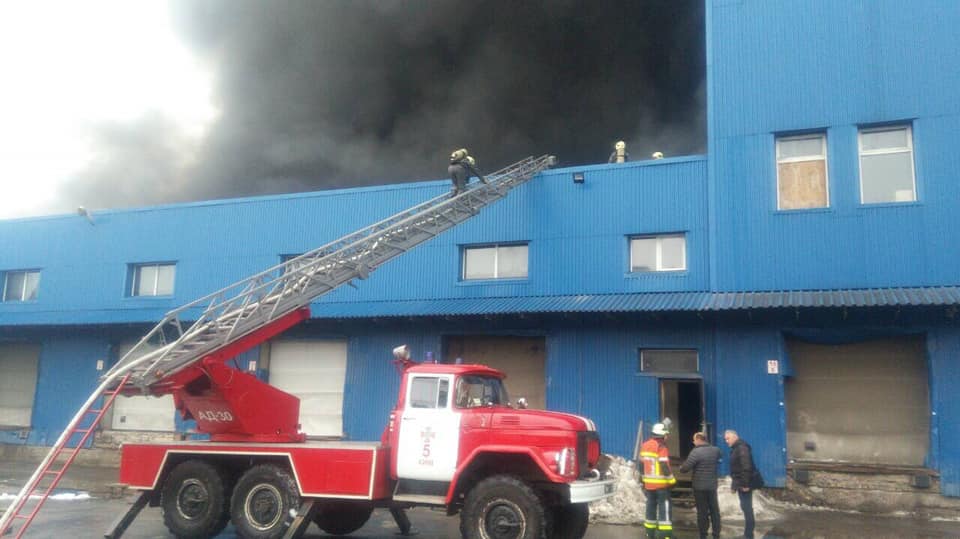 В Деснянском районе Киева горят складские здания. Почти сотня пожарных задействована в ликвидации масштабного ЧП.