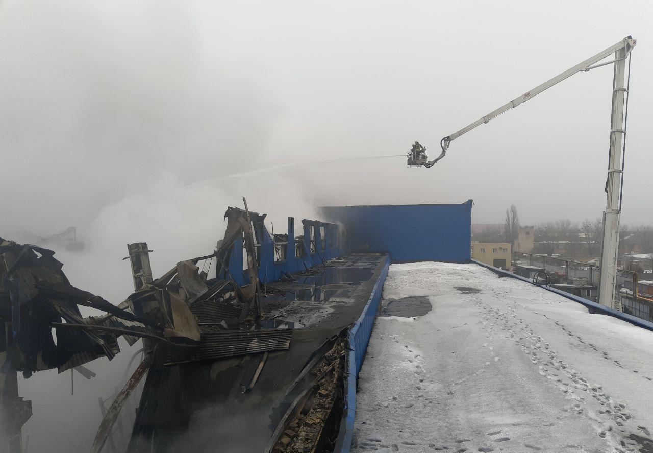 Как сообщили в ГСЧС, по состоянию на 10:00 воскресенья продолжалось тушение отдельных очагов пожара на площади 1500 кв. м, существовала угроза разрушения строительных конструкций.