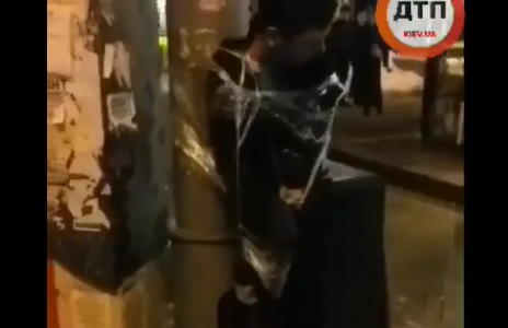 В центре Киева на Майдане Независимости молодого человека примотали столбу скотчем. Как утверждается, он продавал наркотики подросткам.