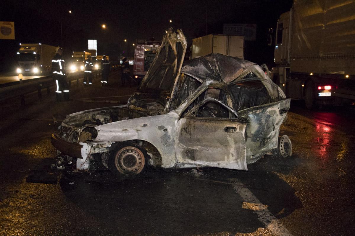 Прибывшие на место ДТП спасатели обнаружили в сгоревшей машине тело пассажира, предварительно, женщины.
