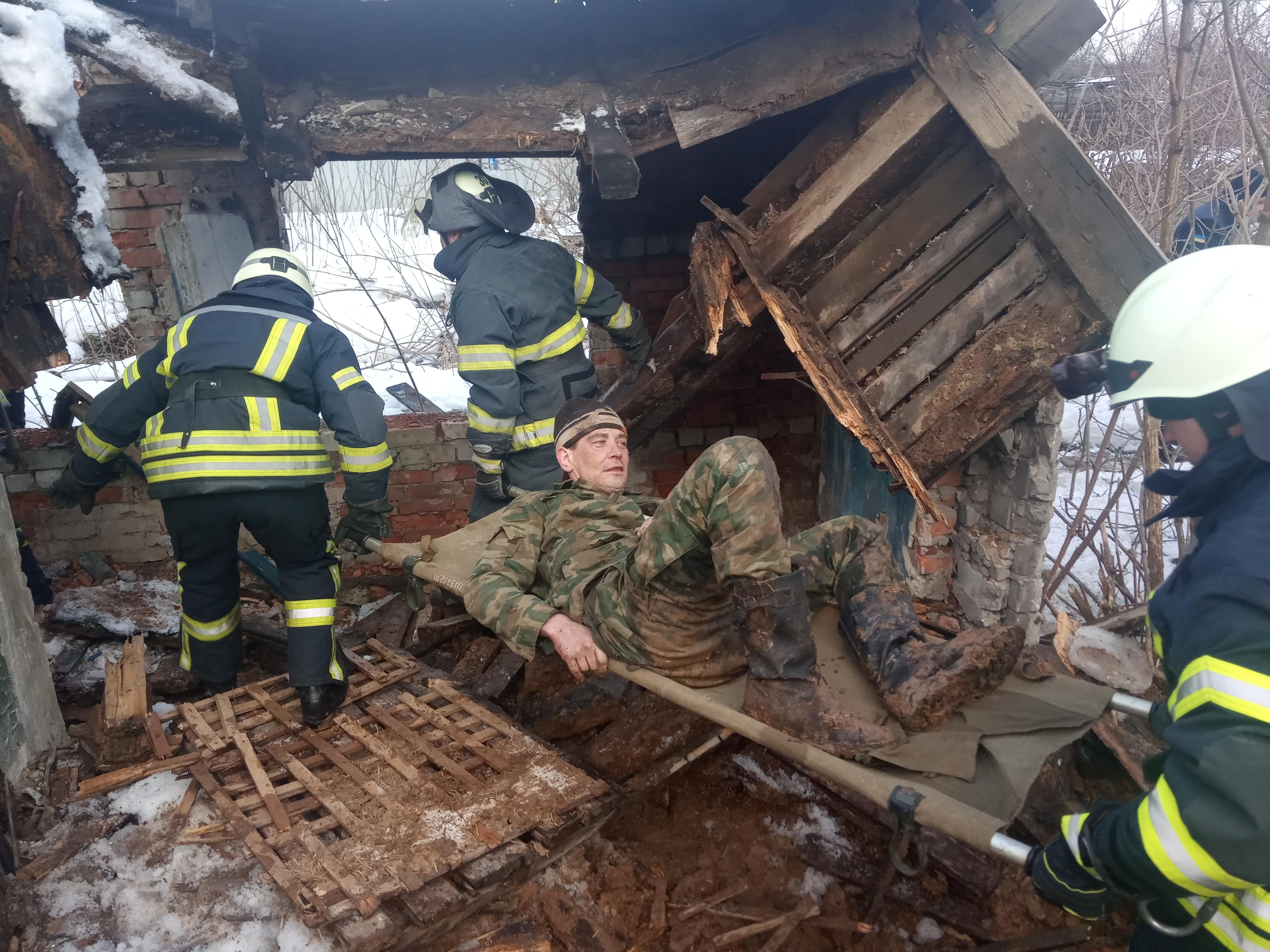 В г. Попасной Луганской области 21 февраля в 15:10 в Службу спасения «101» поступило сообщение о необходимости помощи в освобождении мужчины из-под завала.