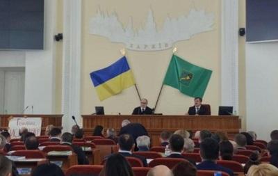 Участники акции протеста скандировали "Кернеса в отставку!", требовали выполнять решение Харьковского окружного админсуда, а также развесили в зале плакаты.