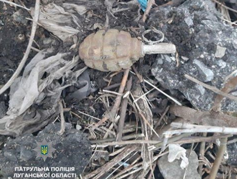 В городе Лисичанске Луганской области посреди улицы прохожий обнаружил гранату. Патрульные полицейские оцепили место происшествия до приезда взрывотехнической службы.