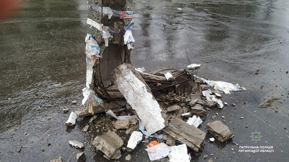 На улице Сосюры в Лисичанске Луганской области автобус врезался в электрический столб, но водитель решил покинуть место аварии.
