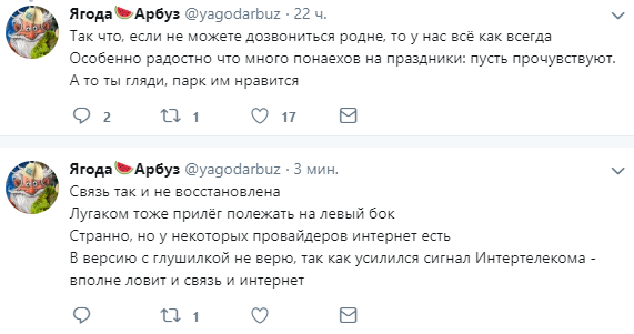 По состоянию на 12:00 4 мая связь Vodafone все еще не восстановлена, к тому же, по информации от местных жителей, пропала сеть и местного оператора "Лугаком". Также не работает часть интернет-провайдеров.