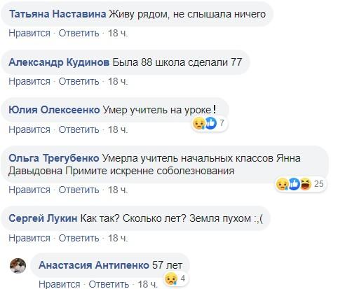 «Она у меня была учителем во 2 и 3 классе в 1987 году.Очень жалко,хороший был человек и преподаватель. Земля пухом», «Так угробить себя из-за какого-то ДПА?? Некогда в жизни!!!! Некто за труд и спасибо не сказал бы ей при жизни,,, а своих детей посиротила… Печаль…», «Ужас. Соболезную родным. Царствие Небесное!», «Хорошая была женщина. Пусть земля будет пухом… Очень жаль,была ещё молодая», «Ей стало плохо после объезда по проверке летних лагерей, после замечаний СЭС, так нам говорили. К сожалению, работа учителя, цениться не сразу…», – пишут харьковчане.