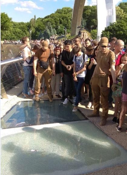 Вчера, 25 мая, Виталий Кличко открыл пешеходно-велосипедный мост, соединяющий парк Владимирская горка с Аркой дружбы народов. А уже сегодня стекло начало трескаться.