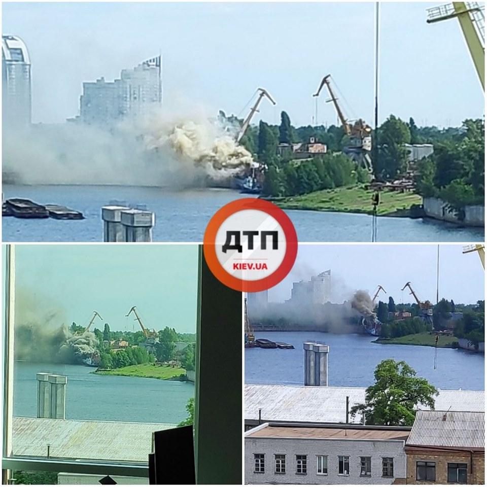 В Киеве утром 29 мая произошел пожар на территории судостроительного предприятия "Кузня на Рыбальском".