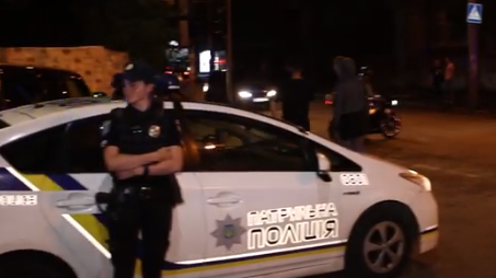 По информации украинских СМИ, молодые люди окружили патрульный Prius и не давали правоохранителям выйти из него. Кроме того, на машину повесили надутый презерватив.