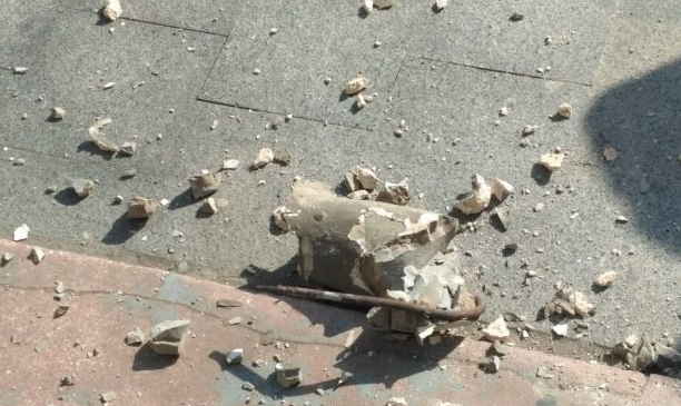 Инцидент произошел сегодня, 11 июня, в центре Львова на проспекте Свободы 3/1. Часть балкона рухнула рядом с местом, где люди останавливаются, чтобы купить кофе.