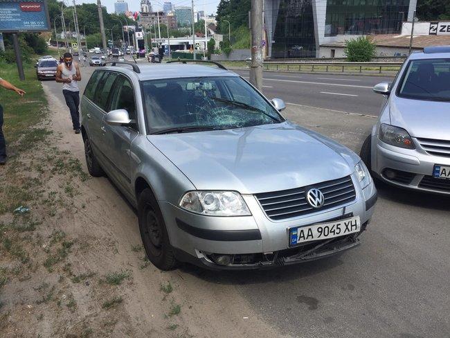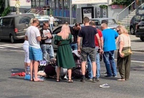 На Протасовом Яру в Киеве водитель на "Volkswagen" совершил наезд на женщину и ребенка, которые находились на пешеходном переходе.