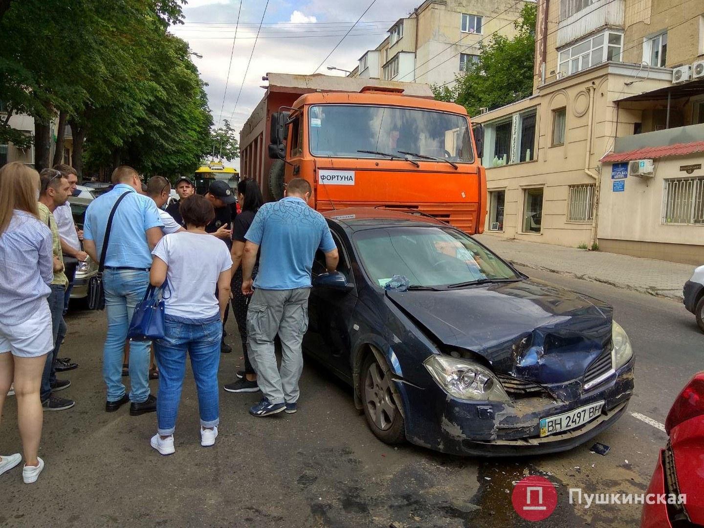 Известно, что в грузовик врезался автомобиль Nissan. В следствии этого произошла "цепная реакция".
