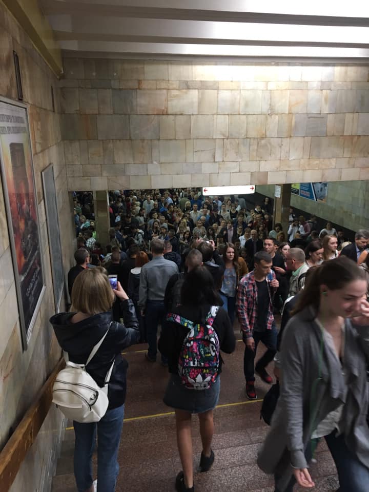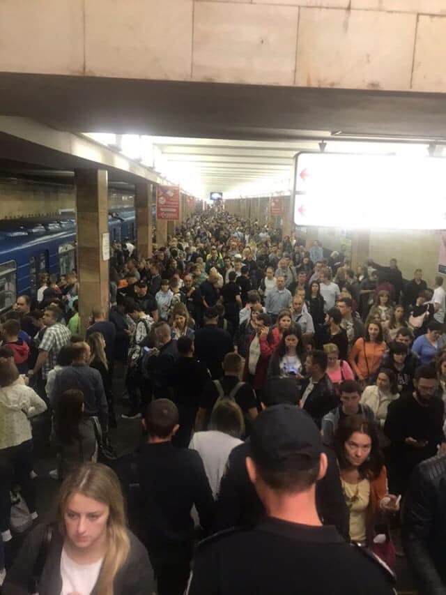 Издание dtp.kiev.ua опубликовало фото с места событий. Как видно, в столичной подземке наблюдается огромное скопление людей.