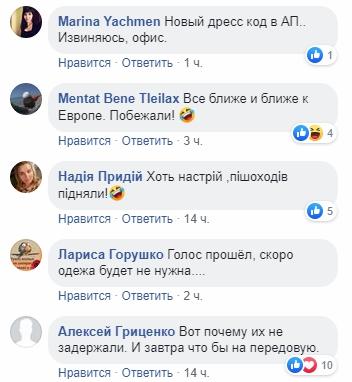 В сети тут же появилась куча предположений по поводу увиденного. Некоторые считали, что эта группа просто проиграла спор, а были и такие, кто предположил, что это новый дресс-код Офиса президента и они опаздывают туда на встречу.