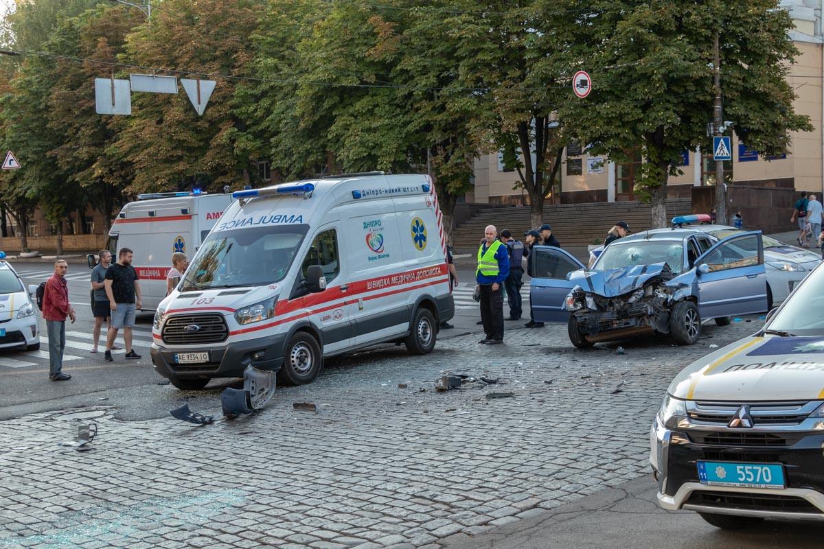 1 августа около 7 утра на перекрестке проспекта Яворницкого и улицы Вернадского в Днепре произошла крупная авария. Автомобиль Hyundai столкнулся с маршрутным такси, в котором были пассажиры.