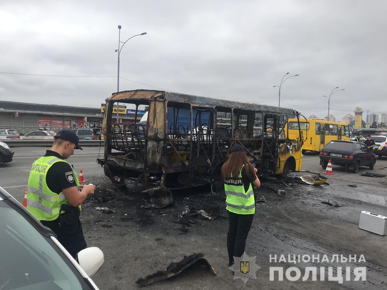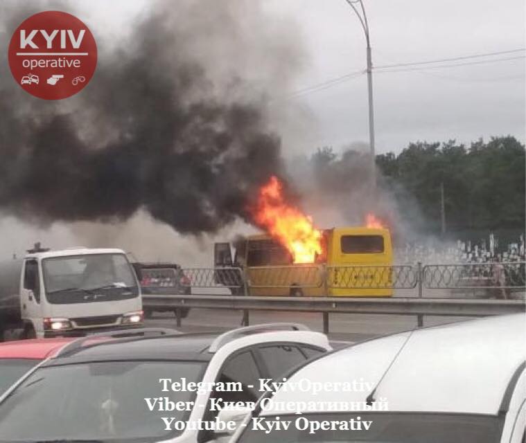 Утром в Деснянское управление полиции поступило сообщение о том, что на Броварском проспекте, возле станции метро «Лесная», горит маршрутка. На место происшествия выезжали спасатели, патрульные полицейские и следственно-оперативная группа территориального управления полиции.
