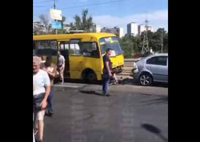 В Киеве на улице Черниговской маршрутный автобус попал в аварию, собрав "паровоз" из 6 машин.
