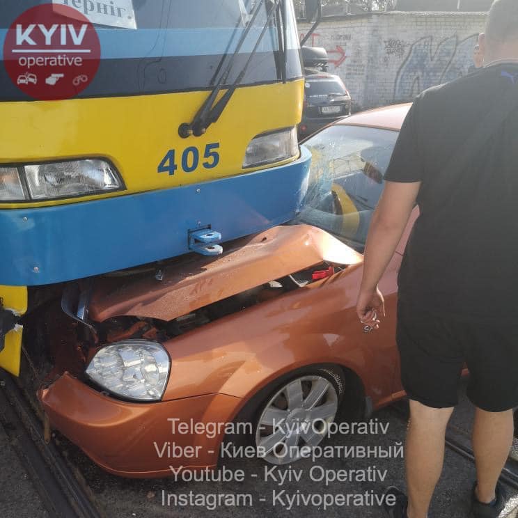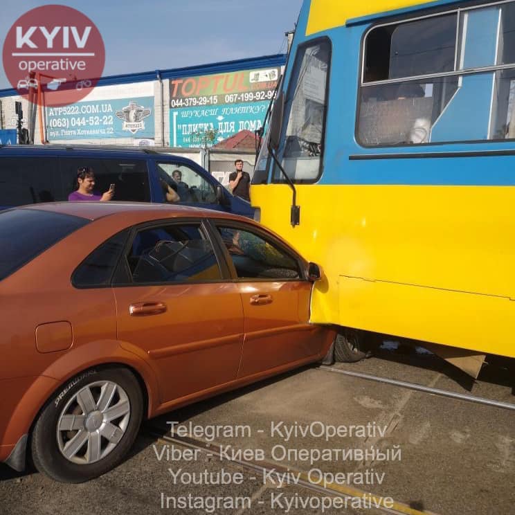 В среду, 11 сентября, на Карельском проулке в Киеве произошло дорожно-транспортное происшествие с участием автомобиля Chevrolet и трамвая.