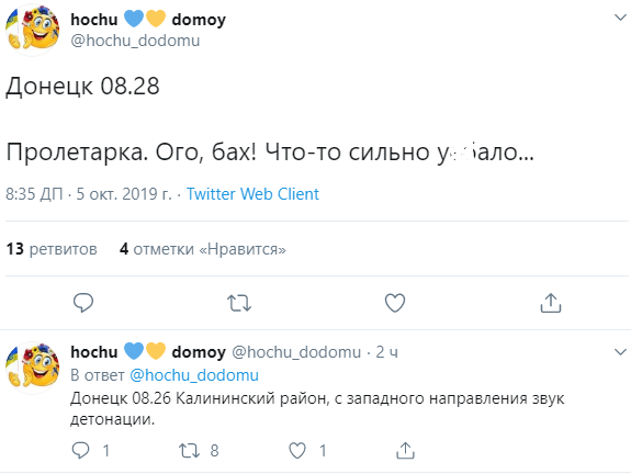 В половине девятого дончане начали жаловаться на очень мощные звуки. Взрывы одиночные, раздаются с интервалом в несколько минут.