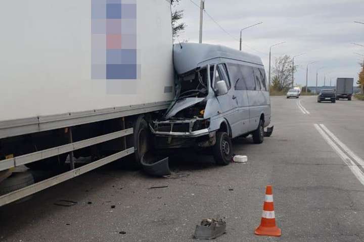 В Запорожье в результате столкновения грузовика и маршрутного такси погибла женщина, еще восемь человек госпитализированы.