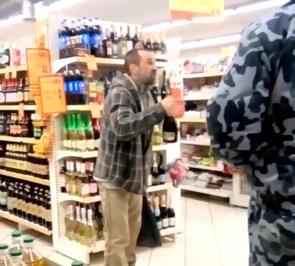 Герой ролика демонстративно распивал спиртные напитки в торговом зале и отказывался платить за них, мотивируя "европейскими законами".