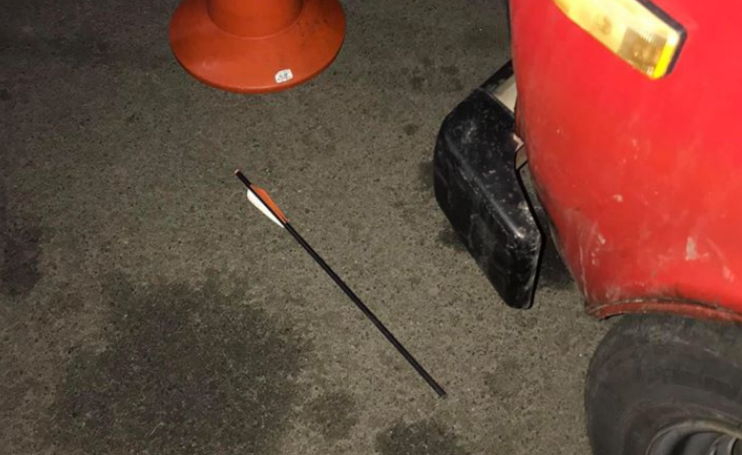 В городе Борисполь Киевской области местная жительница возле своего подъезда была ранена стрелой, выпущенной из арбалета. Стрела пробила женщине ладонь руки.