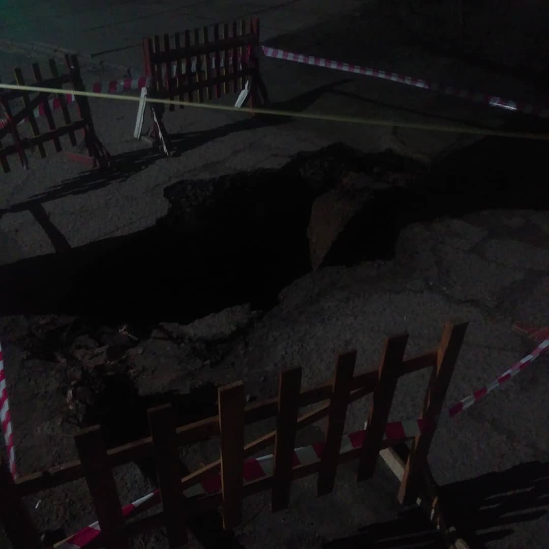 Как видно, вокруг провала уже поставили ограждение и натянули оградительную ленту.
