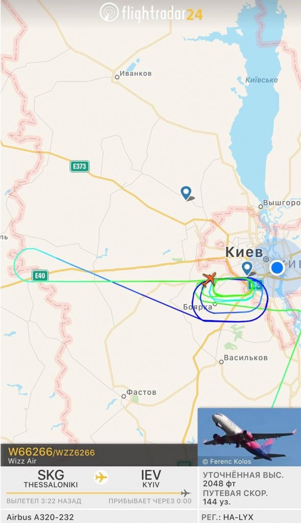 Самолет венгерской авиакомпании Wizz Air около 40 минут кружил над аэропортом "Киев" (Жуляны).