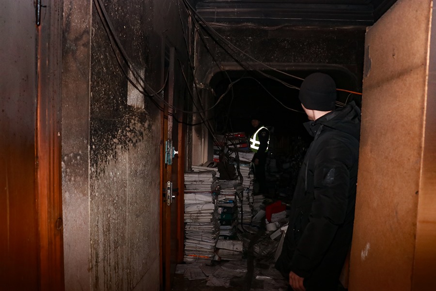 По прибытию на место происшествия первых пожарно-спасательных подразделений было установлено, что пожар возник в подвале в помещении архива.