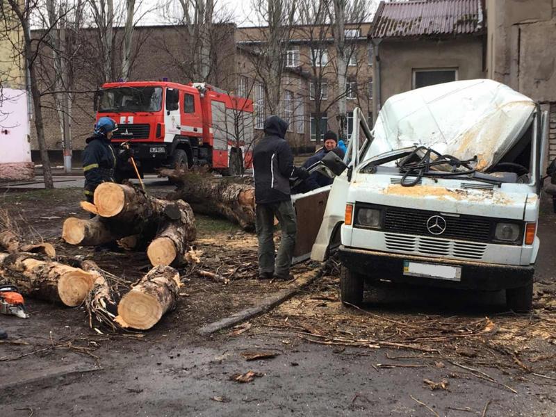 В Кривом Роге на автомобиль упало 12-метровое дерево, заблокировав проезд возле многоэтажки. Спасатели распилили дерево бензопилой и убрали с автомобиля.