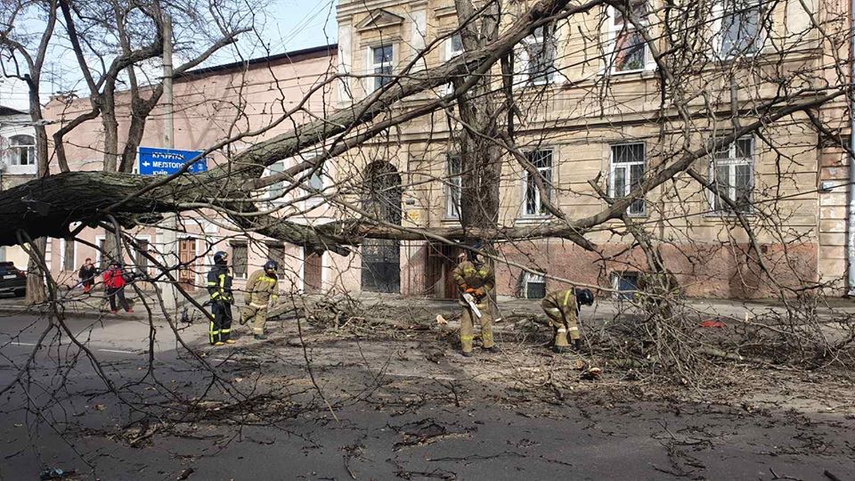 Шкальный ветер также валил деревья на Херсонщине. Местные спасатели убрали 23 поваленных дерева, из которых 20 в Херсоне и 3 по области.