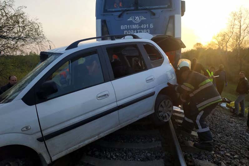 На железнодорожном переезде под Днепром столкнулись поезд и автомобиль Hyundai Matrix. В результате ДТП погибли водитель и пассажир легкового автомобиля.