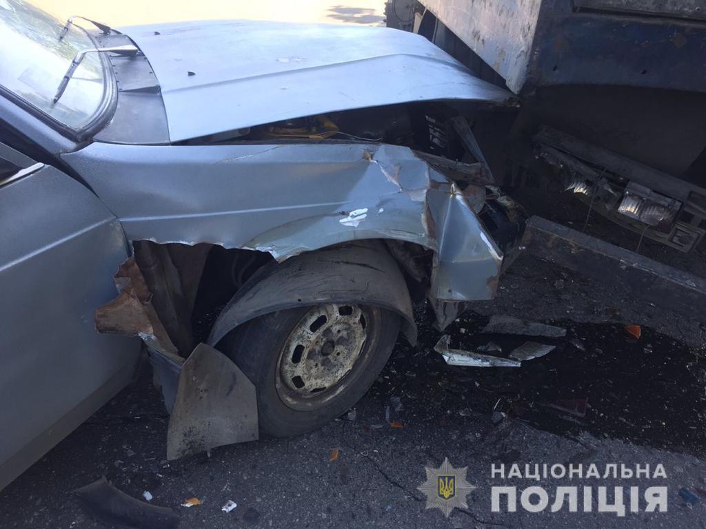 При выполнении обгона грузовика, который двигался впереди него в попутном направлении, водитель легковушки не справился с управлением и допустил наезд на грузовой автомобиль "TATA", который в это время стоял на проезжей части с включенной аварийной сигнализацией.