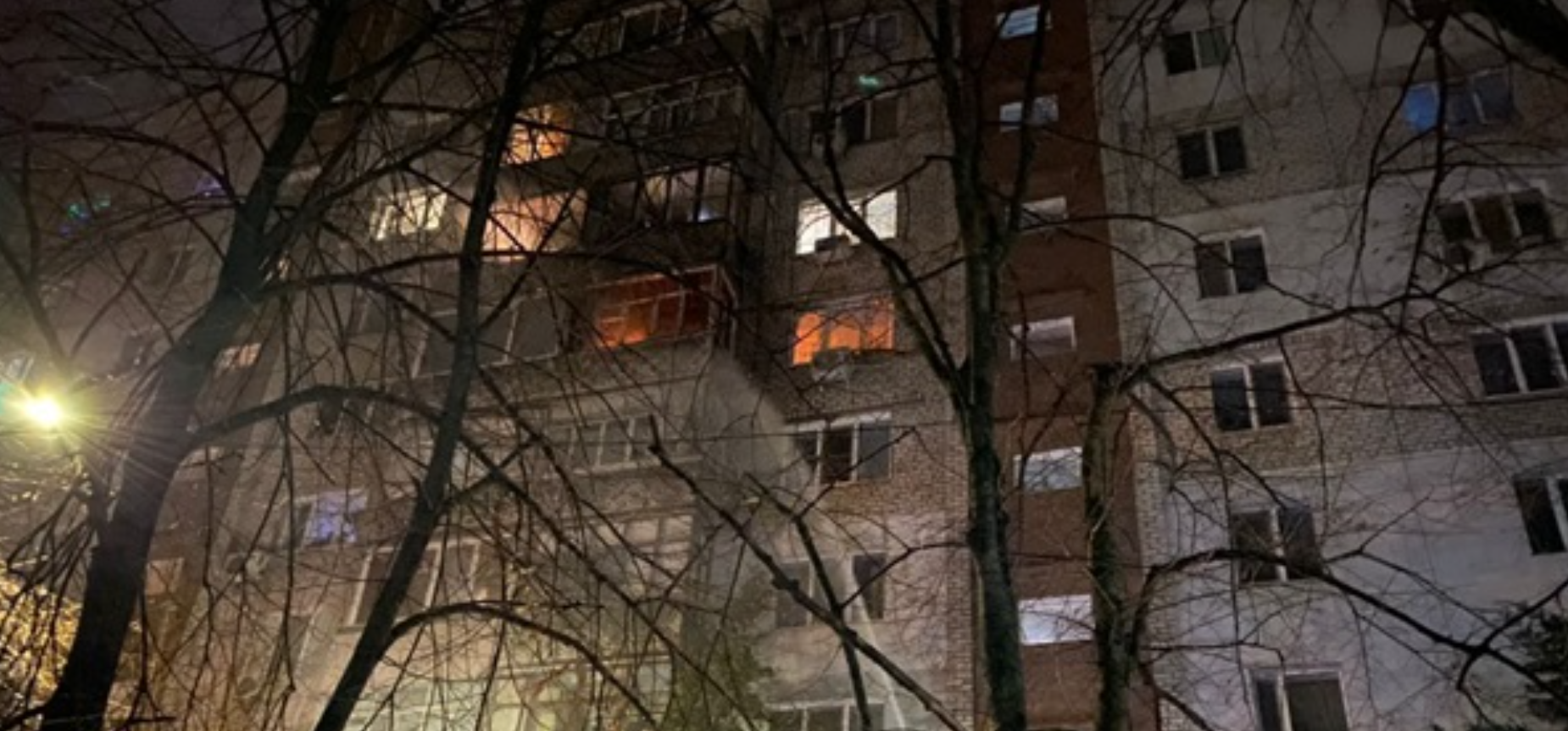 Вскоре после возгорания огонь перекинулся на соседнюю квартиру этажом ниже.