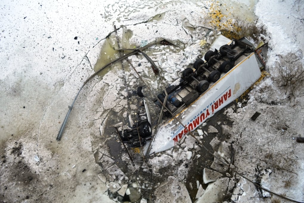 21 февраля на автомобильной дороге М-01 "Киев-Чернигов-Новые Яриловичи", возле с. Шестовица Черниговского района, грузовой автомобиль с прицепом Mercedes-Benz Actros, разрушив конструктивные элементы ограждения моста и отбойника, упал с почти 20-метровой высоты в р. Десна и частично затонул.