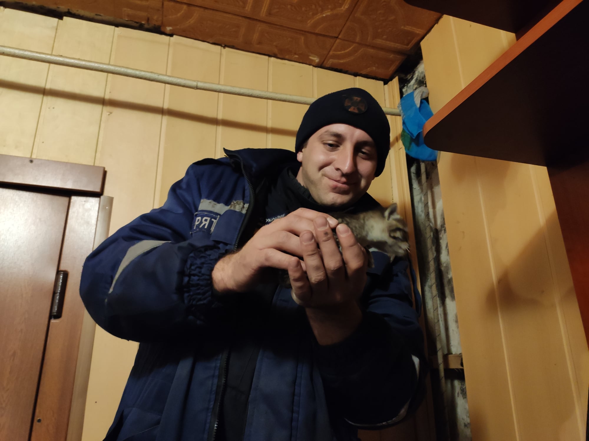 Вечером 12 апреля дежурный караул приехал по вызову в квартал Молодежный, где на дне вентиляционной камеры жалобно звал на помощь маленький котенок. С помощью веревки чрезвычайники достали из ловушки пушистого малыша.