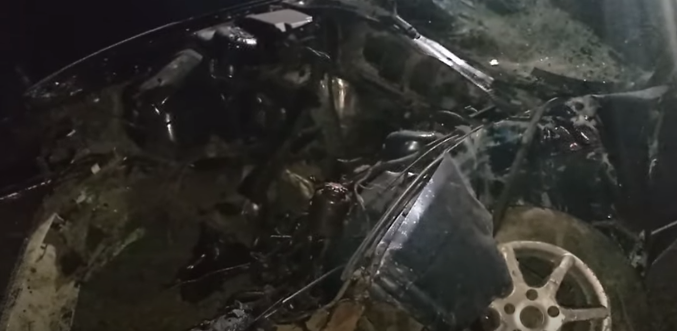 Удар был настолько сильным, что автомобиль буквально превратился в груду железа. Двигатель вырвало из авто и отбросило на 10 метров.