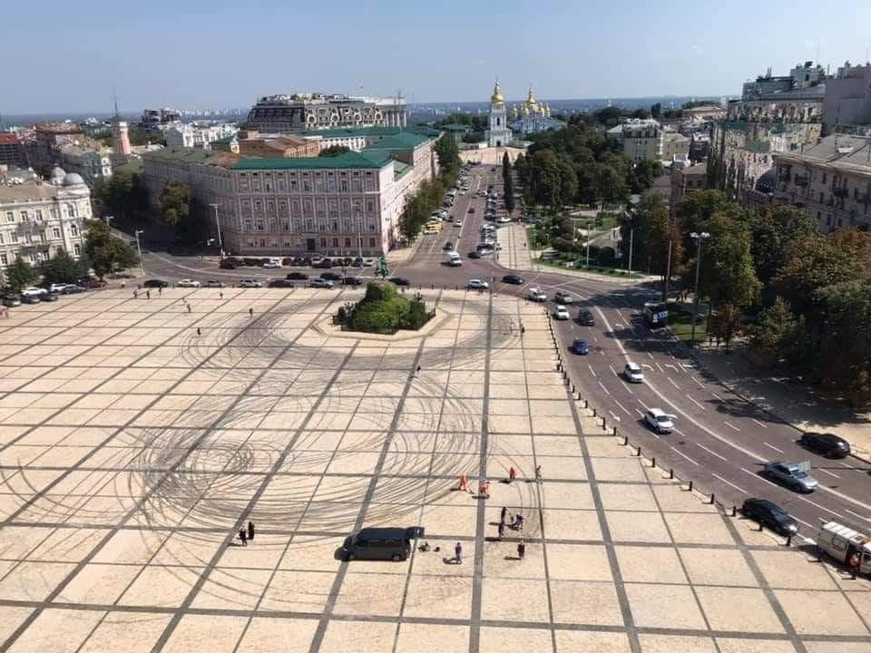 "Сегодня утром в историческом центре столицы, на Софийской площади, проходили рекламные съемки с использованием экстремальных элементов. В частности, авто дрифтовали на большой скорости среди пешеходной зоны.