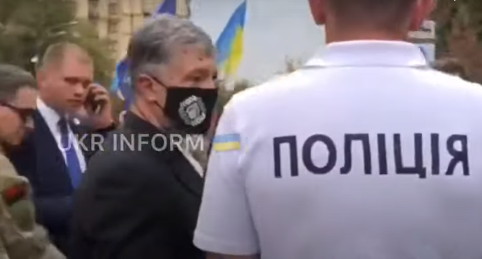Пятого президента Украины, лидера партии "Европейская Солидарность" Петра Порошенко облили зеленкой на Марше защитников.