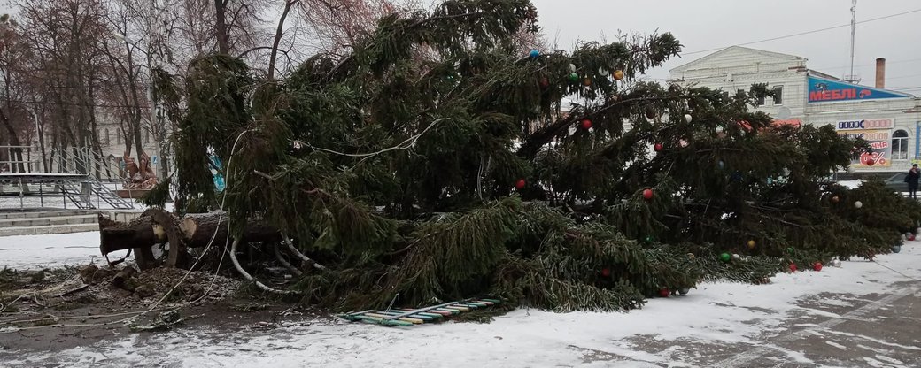 Вечером 19 декабря главная городская елка Мариуполя не выдержала сильного ветра и упала. Ранее похожие инциденты произошли еще в двух украинских городах.