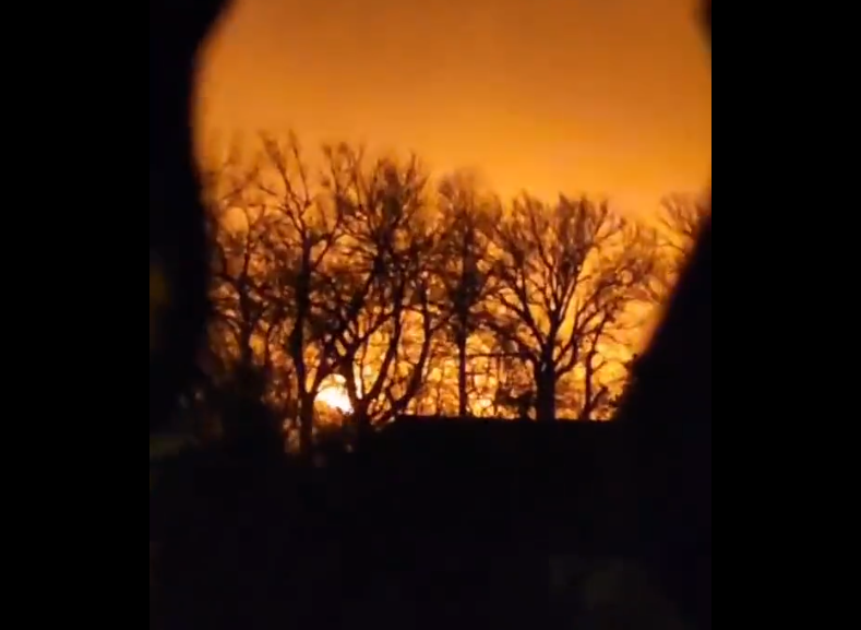 В тылу неподконтрольной территории Луганской области, в городе Ровеньки вечером 26 февраля пылала нефтяная база.