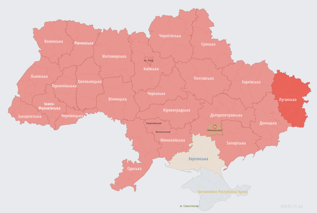 После 20:00 в воскресенье, 7 августа по всей Украине, кроме временно оккупированных территорий, объявлена воздушная тревога.