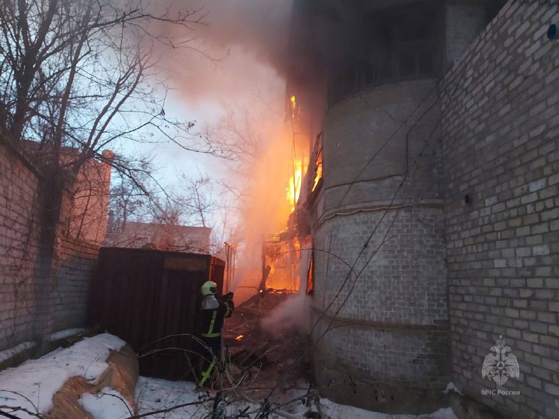 В оккупированном Рубежном Луганской области произошел пожар в многоквартирном доме. Дом площадью 450 кв. м спасти не удалось.