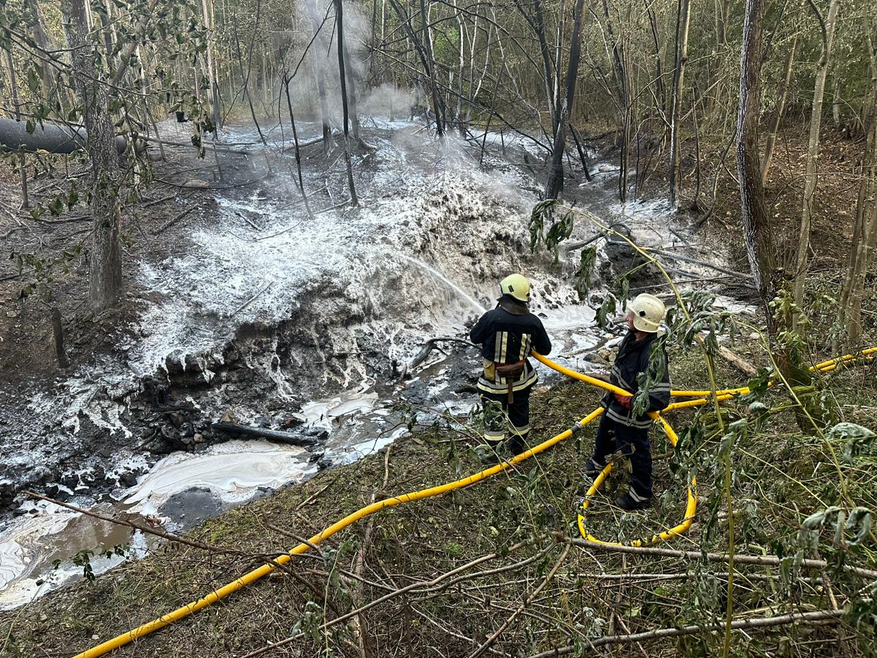 Событие произошло в 17:00 вблизи населенного пункта Стримба Надворнянского района. В результате прорыва разлились нефтепродукты и возник пожар: