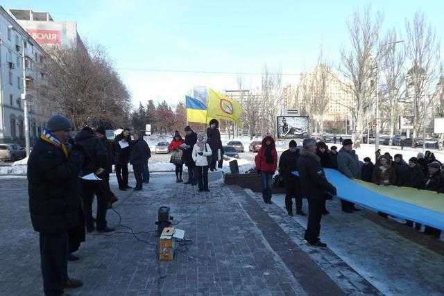 Позже к участникам Донецкого евромайдана, которые собрались на Народное вече подошли два десятка неизвестных лиц, которые "приложили все усилия", чтобы сорвать мирные собрания.
