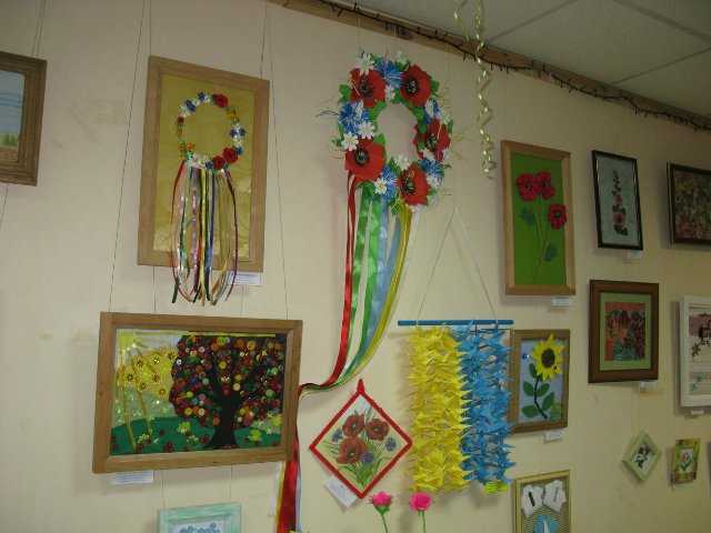 На выставке-конкурсе представлено около 200 работ, выполненных в различных техниках и из разных материалов: глины, дерева, соломы, лозы, кукурузы, бисера, ткани, ниток, соленого теста бумаги и т.д.